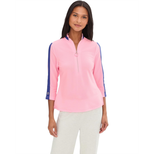 [US] Womens Jamie Sadock Textured Ottoman 3/4 Sleeve 1/4 Zip Top