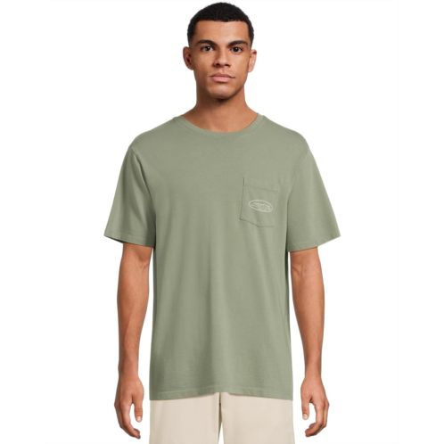 The Vineyard Vines Outlined Surf Logo Short Sleeve Tee blends casual style and premium comfort for everyday wear. The pull-on style soft-washed durable cotton tee features a crew neck, short sleeves, a patch pocket on the left chest with logo detail, and a straight hem.