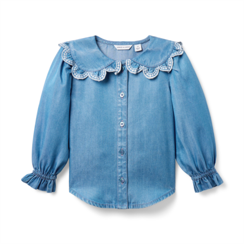 [US] Janie and Jack Chambray Scalloped Collar Top