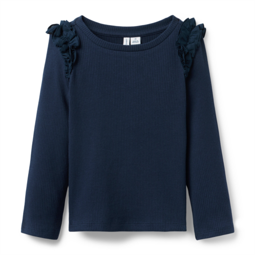 - Our ribbed top is extra cozy in soft, brushed fabric. Finished with ruffles at the shoulders, it's ready to pair with all their favorites.