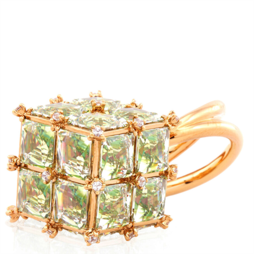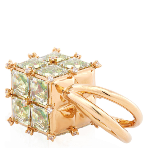 Swarovski Ladies Rings. Curiosa series. Ring style: Cocktail. Swarovski Curiosa Cocktail Ring. Inspired by the elegance of geometry, the Curiosa Cocktail Ring features bichromatic square-cut stones in a vibrant green hue, set on a gold-tone plated double band. A bold and captivating statement piece, it can be worn solo or paired with other striking designs from the Curiosa collection. Material: Gold-tone plated, Zirconia. Color: Green.