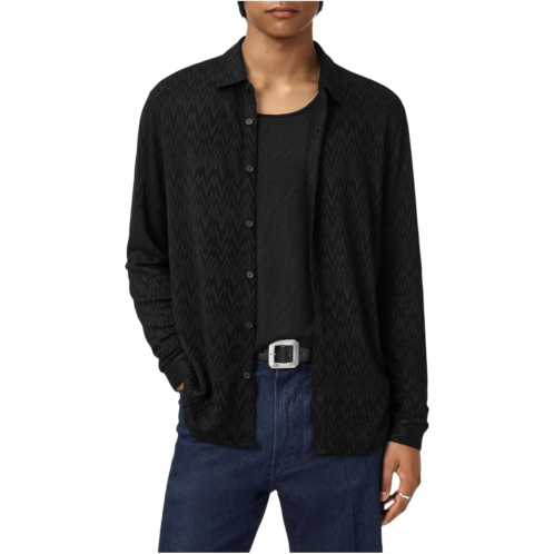 Flaunt an uber-stylish look wearing the John Varvatos Redmond Shirt. The shirt features a collared neck, long sleeves with buttoned cuffs, a button-front closure, an allover stylish pattern, and a shirttail hem.