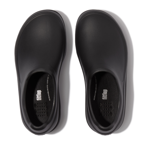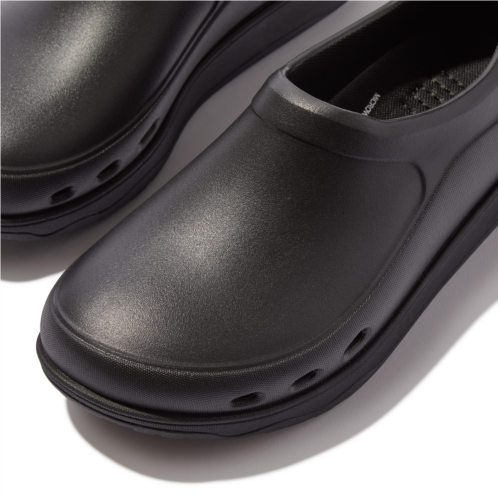 These are anti-static, slip-resistant (inc. to oil), wipe-clean for daily sanitizing, in a closed-back design that’s easy to slip on but stays on your feet. Just as important, they feel amazing. Made of soft light injection-molded EVA foam. On our ultra-cushioning Microwobbleboard midsole for all-day comfort and energy efficiency.