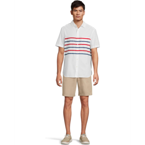 Show off a poised and sophisticated look wearing Vineyard Vines Ash Stripe Madras Short Sleeve Shirt. The collared shirt features a full front-button closure, short sleeves, a patch pocket on the left chest, striped details at the front, and a shirttail hem.