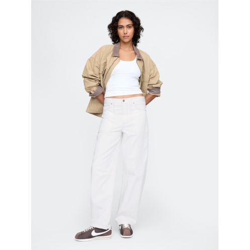 -Fit:A full-length barrel jean that's fitted at the waist with a relaxed leg and tapered ankle.