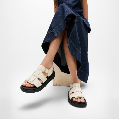This fisherman boasts a directional chunky sole and neat interwoven-strap upper. Beautifully crafted in a rich luxe leather that has tone and depth. A curvy brushed-metal buckle adjusts the fit. With minimal stitching and leather linings/welts adding to the refined feel. On a light clean-look version of our ultra-cushioned Microwobbleboard midsole. The sensible-chic shoes of the season they’re unlikely to leave your feet.