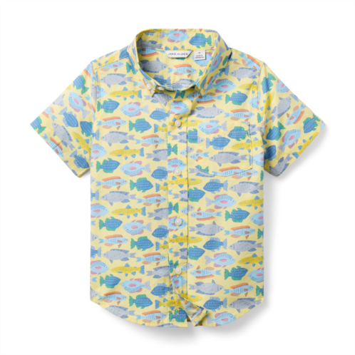 A sea of style for our shirt in crisp cotton poplin. Featuring an allover fish print and tailored details to love, like collar point buttons.