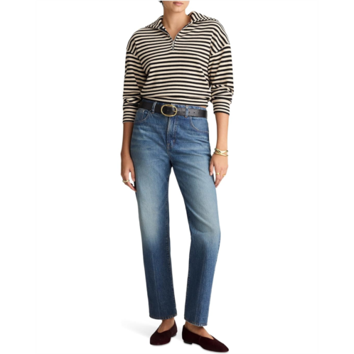 - The Madewell Half Zip Stripe Jacket is where timeless stripes meet modern ease, a statement of laid-back sophistication with a touch of sporty charm. Designed in a regular fit that flatters every silhouette, it features a collared neck and half-zippered front that blend versatility with style. The long sleeves and soft fabric make it perfect for layering through changing seasons, while the pull-on design ensures quick, cozy comfort wherever your day takes you.