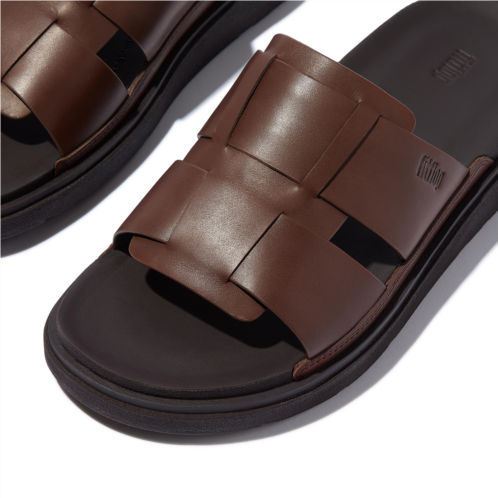 This fisherman, here in a slide version, boasts a chunky (yet light) sole and neat interwoven-strap upper. Beautifully crafted in a rich luxe leather that has tone and depth. Minimal stitching, leather linings/welts and a subtle embossed logo add to the refined feel. On our biomechanist-developed Microwobbleboard midsole for unbeatable underfoot comfort. Easy-on, casual yet elegant, and you can walk for miles in them.