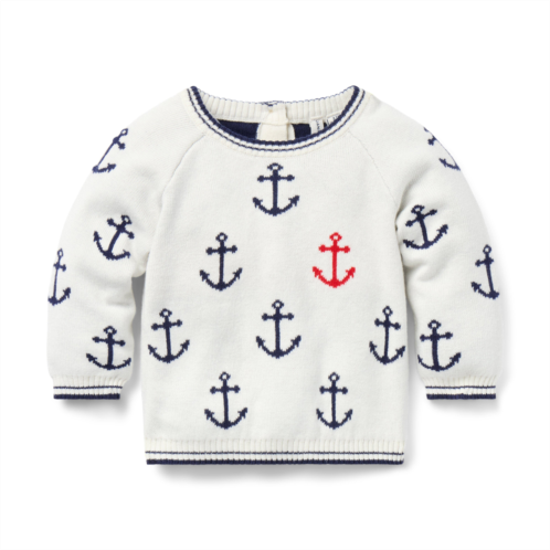 Set sail for cozy first moments. Our sweater in soft, pure cotton is designed with allover intarsia-knit anchors, striped ribbed details and raglan sleeves.