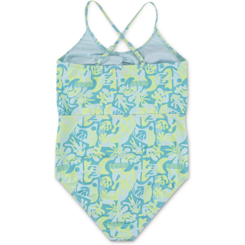 Spend a fun day at the beach wearing Hurley Kids Cutout One Piece Swimsuit, made from textured swim jacquard with UPF sunlight protection. The pull-on style one-piece features two adjustable straps with crisscross back, a front cut-out above the belly, and a colorful allover print.