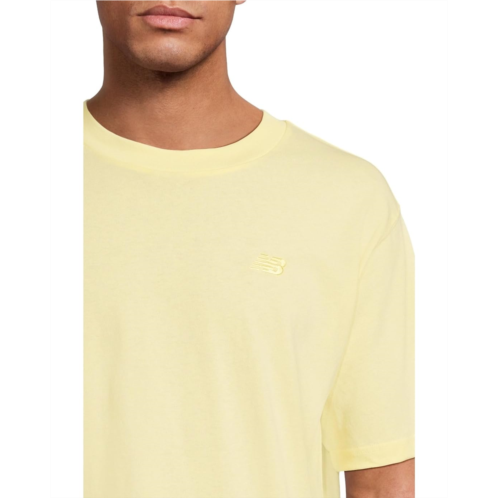 Experience timeless comfort wearing the New Balance Athletics Cotton T-Shirt is crafted for both style and effortless wear. Crafted for a relaxed, roomy fit, this tee is designed to move with you, offering a loose silhouette that's perfect for laid-back days. Featuring a timeless crew neck and short sleeves, it delivers a versatile, breathable design that pairs with anything. The embroidered NB logo adds a touch of sport-inspired style, making it an essential wardrobe piece for both everyday wear and athletic adventures. Easy to pull on, this t-shirt combines fashion and function in one perfect fit.
