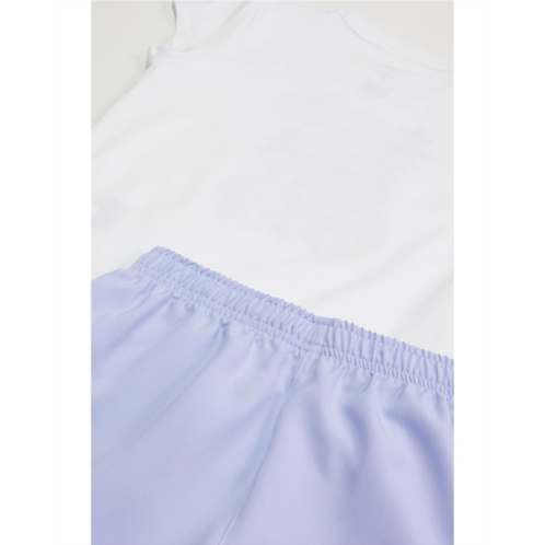 Take your little one for her first exploration wearing the adidas Kids Cap Sleeve Tee & Woven Short Set that is cut just right keep things comfy and allow freedom of movement. The pull-on style tee features a crew neck, cap sleeves, creative soccer-inspired graphic at the chest, and a slightly curved hem. The pull-on style shorts feature a mid-rise elasticated waistband, contrasting details, adidas logo detail at the front, and curved hems.