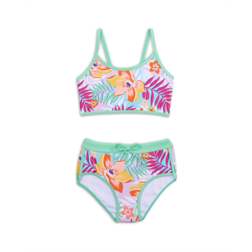 Let your little splasher enjoy the waves wearing the Appaman Kids Stella Swim Shorts Set. Featuring an all-over printed design, this UPF 50 protective swimsuit has a top and matching bottoms. The sleeveless top has thin straps and a scoop neckline. The elasticated bottom offers moderate coverage and is highly comfortable to wear. The tankini swimwear has a quick dry feature, a regular fit silhouette, and a pull-on style closure.