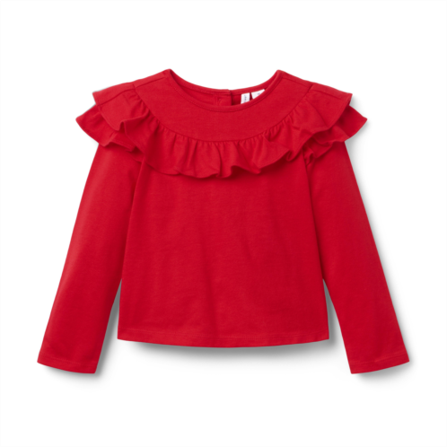 A wardrobe favorite for getaways or any day. Our top in pure cotton jersey features ruffle details for extra frills.