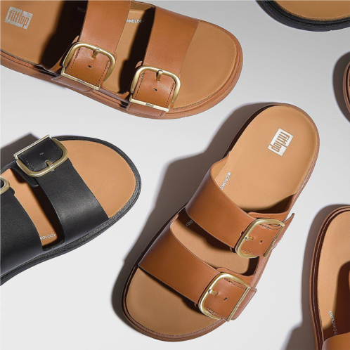 [US] Fitflop Buckle Two-Bar Leather Slides