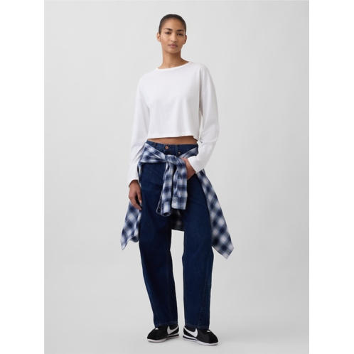 -Fit:A full-length barrel jean that's fitted at the waist with a relaxed leg and tapered ankle.
