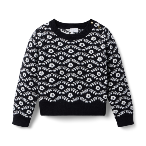 - A crafted and cozy sweater in soft jacquard. With allover florals, ribbed trim and gold-tone buttons at the shoulder.