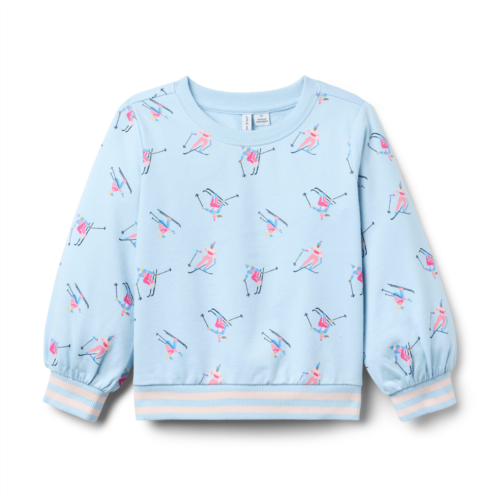 - Our favorite sweatshirt hits the slopes. Designed in soft brushed French terry with an allover skier icon print, puff sleeves and ribbed details.