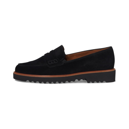 This modern Paul Green take on the Carmel penny loafer features a textured lug sole with accent piping. The padded insole and soft suede are finishing touches to the style. The low-top loafers have sleek leather upper, breathable leather lining, and leather insole.