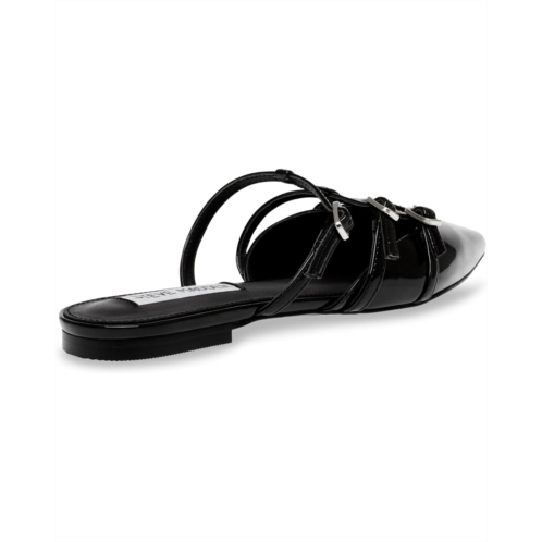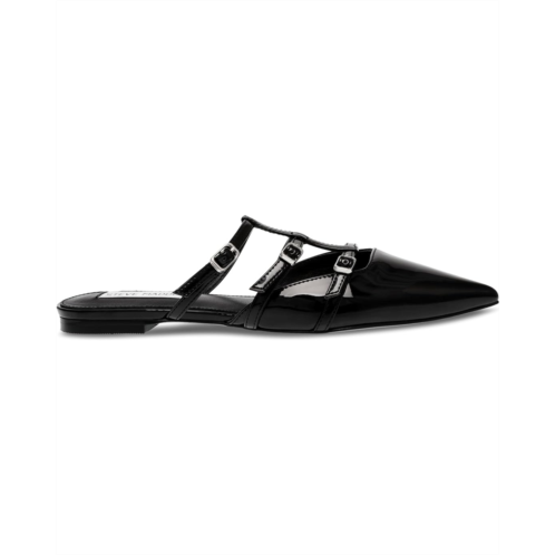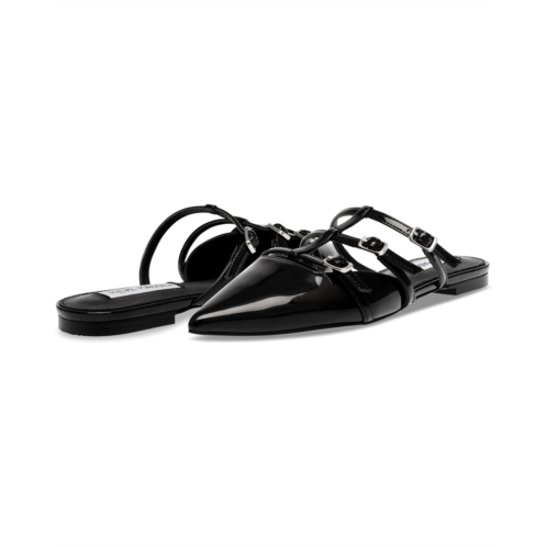 You would never go out of style by wearing the Steve Madden Shatter sandals. These sleek and sophisticated sandals have an open back flat with a triple T-strap design and buckle over the top of the foot. The pointed-toe mule flat sandals have leather lining and rubber insoles. The bold detailing works well with casual and formal clothing.