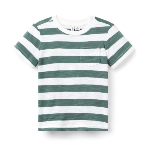 Our classic tee in the softest cotton slub with allover stripes, a ribbed collar and a chest pocket detail. Their wardrobe needs one in every color.