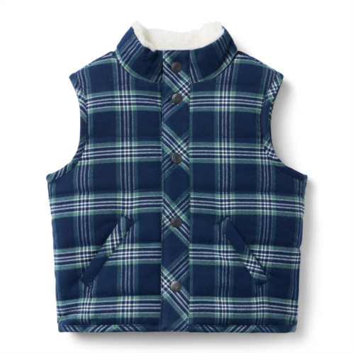 Our cozy plaid vest is a must-have for cool days. Designed with soft sherpa lining, allover quilting and pockets too.