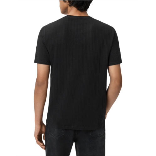 A refined take on the classic crew, the John Varvatos Brasse Crew K7009W25 Tee is a short sleeve style, knit with a custom chain-inspired stitch that mimics the dimension of a traditional cable. Detailed with a crew neck, piped shoulders, a straight hem with subtle side slits, and tonal logo embroidery, it's finished with just enough stretch for structure and ease.