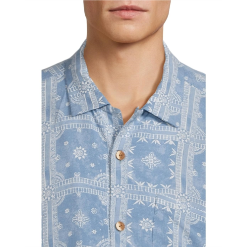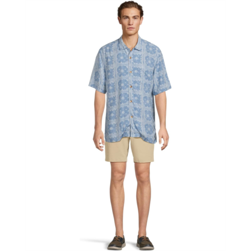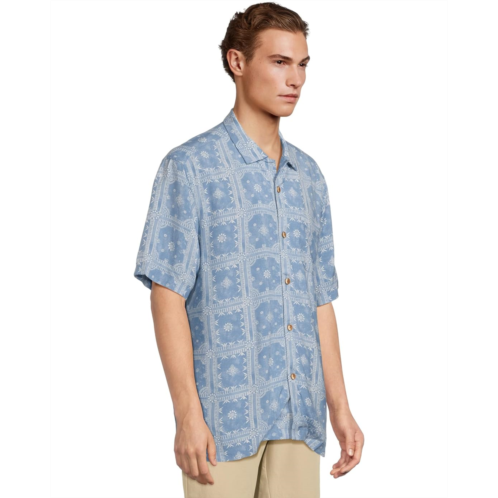 The Tommy Bahama Veracruz Cay Bandana Breeze shirt is a short-sleeve woven shirt featuring a vibrant allover geometric print. It is styled with short sleeves, a traditional camp collar, a rounded chest pocket, and a straight hem. A part of the Veracruz Cay collection, this button-down shirt is ready for good vibes and great company.
