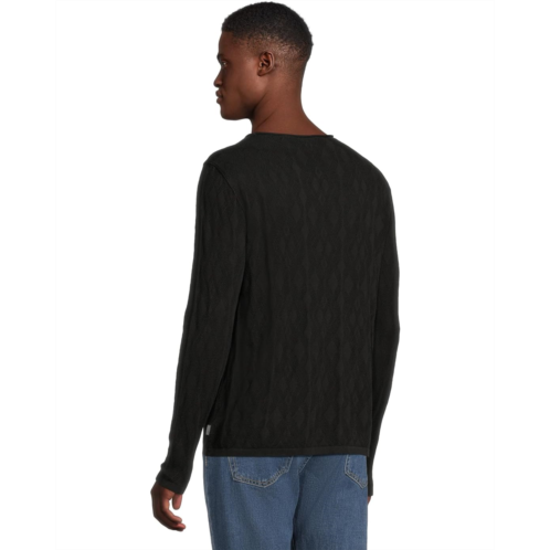 The Brycen Crew features a geometric jacquard stitch in a broken argyle pattern, brought to life through a vintage wash that enhances its dimensional texture. Crafted in mercerized organic cotton, it's finished with a subtle roll neck and forward shoulder seams for a polished but laid-back profile.