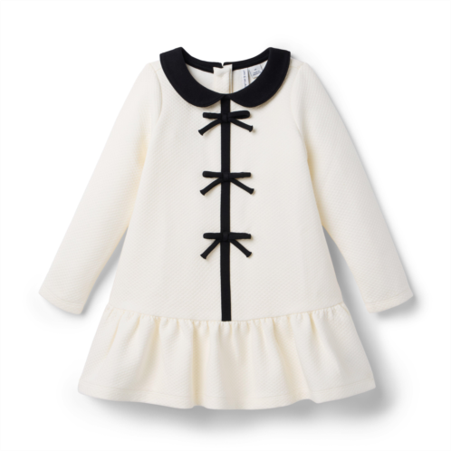 - Chic meets cozy with our dress featuring allover diamond quilting. In a dropwaist silhouette we love, with a Peter Pan collar, contrast trim and bow details too.