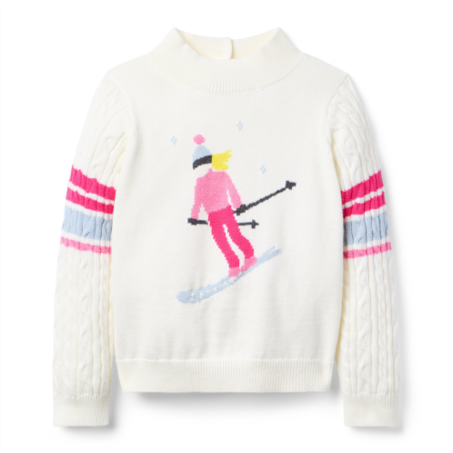 - Peak sweater weather style. With an intarsia-knit skier, cable knit trim and striped details, this cozy knit favorite stands out on or off the slopes.