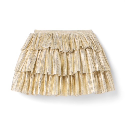 Sparkle and shine in our metallic skirt. Featuring pleated details and a tiered silhouette.