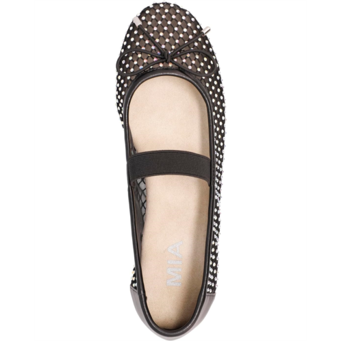 Stand out from the rest wearing the MIA Unica shoes. Designed with a mesh upper that features rhinestone detail allover, you'll receive infinite compliments wearing these ballet shoes. The anatomical faux leather footbed and faux leather lining offer added comfort and breathability. Finished with a chic bow and elastic Mary Jane strap on top, these ballet flats make a great addition to your footwear collection.