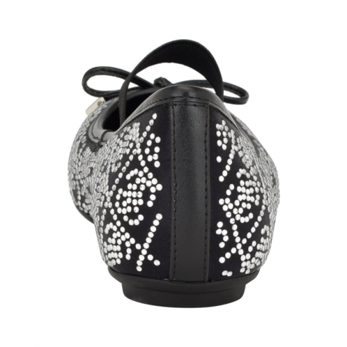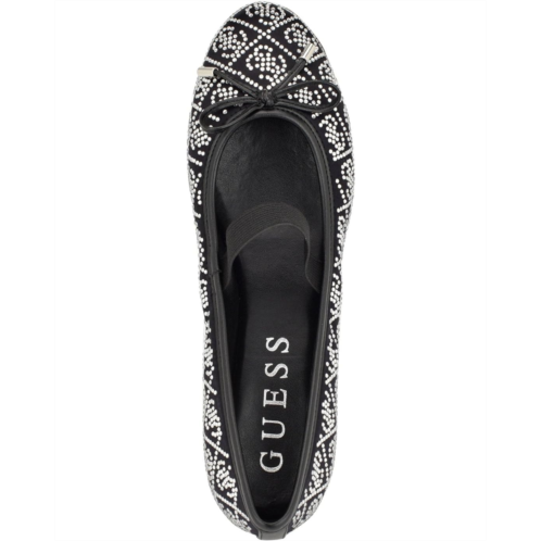 Designed with rhinestone detailing allover for an eye-catching appeal, the GUESS Kairo shoes add a designer touch to your outfits and styles. The polyester upper of these ballet flats features a bow detail that offers a stylish look. These shoes come with a padded insole and polyester lining that makes them comfortable for all-day wear. Perfect to pair with your party dresses and looks, these Mary Jane shoes make a great addition to your footwear collection.