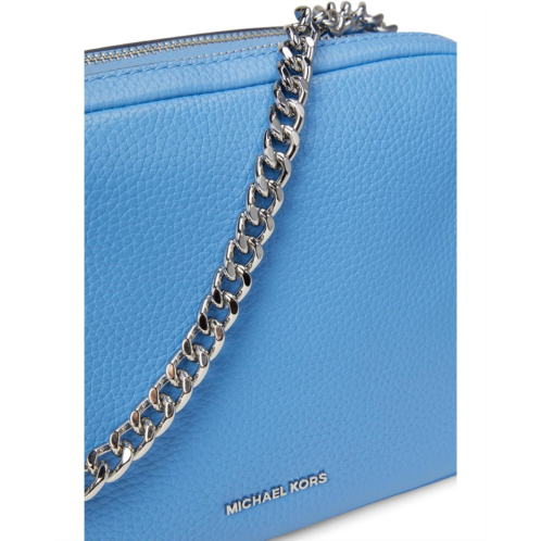 - The MICHAEL Michael Kors Bryant Medium Double Zip Chain Camera Crossbody is your perfect blend of elegance and utility. Crafted from solid pebble-embossed leather with a luxurious polyester lining, this sleek crossbody bag is a style statement in itself. Featuring a secure zippered closure, two thoughtfully designed pockets, and a spacious main compartment, it ensures your essentials stay organized without compromising on sophistication. The adjustable chain crossbody strap adds a touch of glam while providing hands-free convenience for your busiest days. Lightweight, versatile, and undeniably chic, this crossbody is the ultimate companion for city strolls, casual outings, or evening soirees.