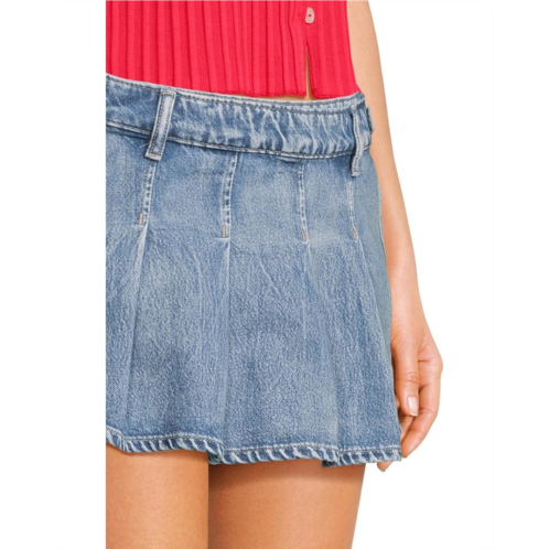Look effortlessly cool in the Free People Stephie Denim Skort. This low-rise denim skort features a classic A-line fit with wrap-front detailing and pleating throughout. The zippered side and offset closure add a touch of edgy flair, while the shorts lining underneath ensures all-day comfort.