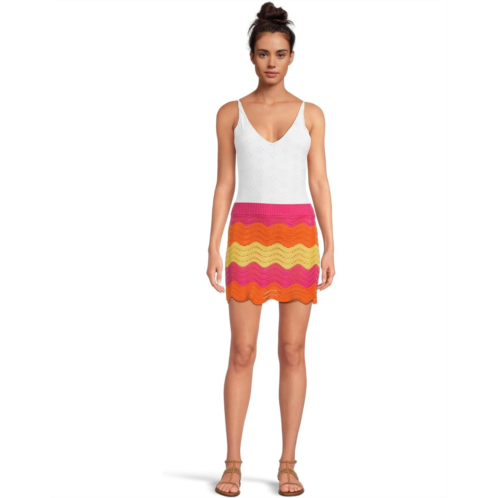 Elevate your holiday wardrobe with the Beach Riot Bali skirt. It features elasticized waistband, allover open knit with multi-color detailing and scalloping. This mini-length skirt has lining, and a high-rise silhouette.