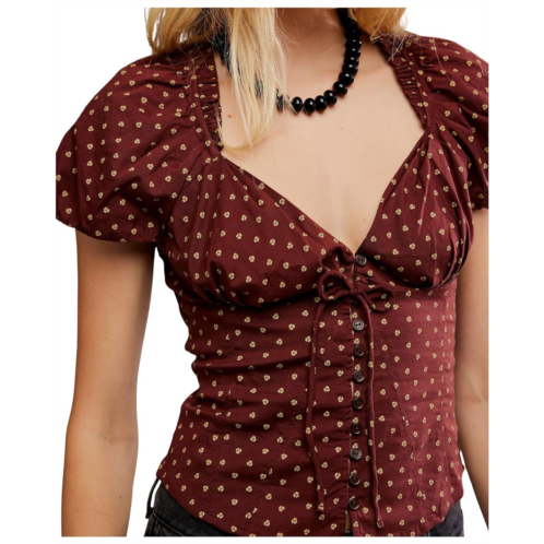 - The Free People Summer Printed Blouse brings bohemian charm to everyday style with its lived-in feel and timeless femininity. Designed in a classic fit that flatters every figure, this blouse features a sweetheart neckline and cap short sleeves that add a soft, graceful touch. The button front closure and delicate bow design infuse playful detail, while the pull-on style ensures easy, breezy wearability.