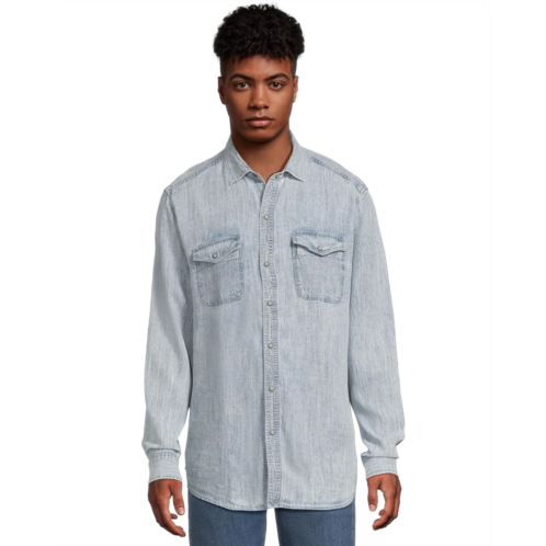 Style and sophistication come together in the Tommy Bahama Go West Shirt. The long-sleeve indigo acid washed shirt comes with a collared neck, buttoned cuffs, double-snap chest pockets, and a snap front closure. The shirttail hem completes the look.