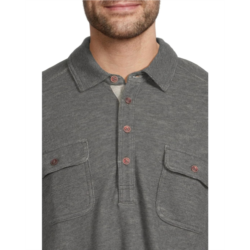 Effortless style meets all-day comfort in the Tommy Bahama Penn Cove Polo Long Sleeve, the modern essential your wardrobe's been waiting for. Designed in a solid heather double-face fabric, this polo blends refined texture with laid-back charm. The regular fit ensures ease of movement, while the Henley neck with a four-button placket offers versatile styling, wear it open for a relaxed vibe or buttoned for a sharper look. Two chest pockets add a touch of utility, complemented by rivet and bartack details for subtle ruggedness. The cuff plackets and long sleeves transition seamlessly from cool mornings to breezy evenings, making it a pull-on piece you'll reach for year-round.