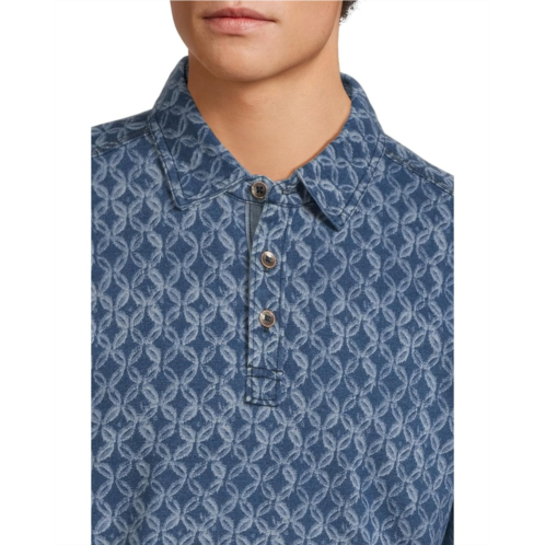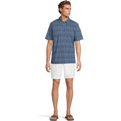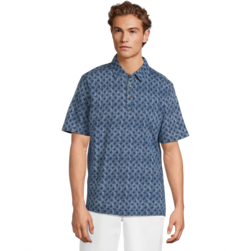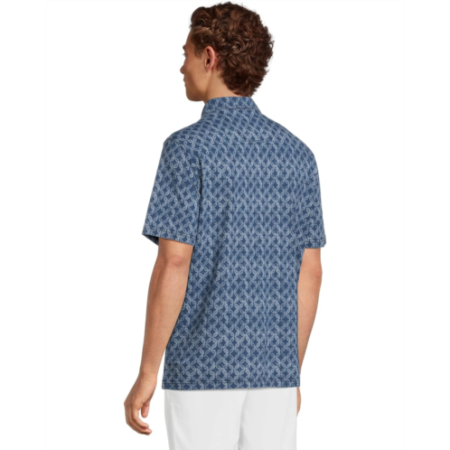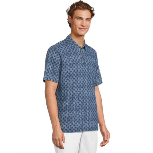 Add comfort and a dash of style to your appeal wearing the Tommy Bahama Indigo Tiles Polo Shirt. This printed cotton indigo jersey short-sleeve polo comes with a collared neck, three-button placket, chambray trim, rivet, and bartack details. The straight hem completes the look.
