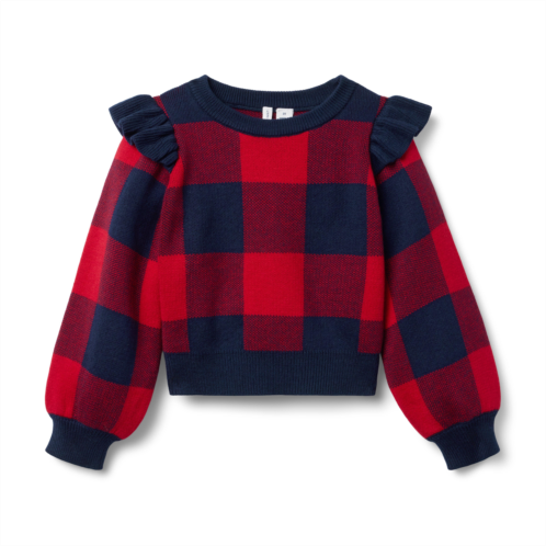 [US] Janie and Jack Plaid Ruffle Shoulder Sweater