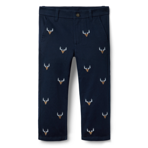 - Our classic twill pant gets a charming twist with embroidered deer icons. In a straight leg silhouette, it's perfect for any festive occasion.