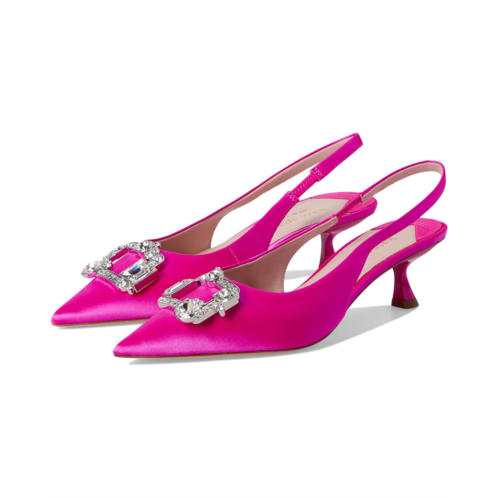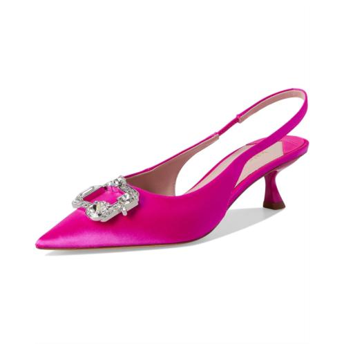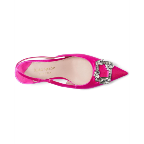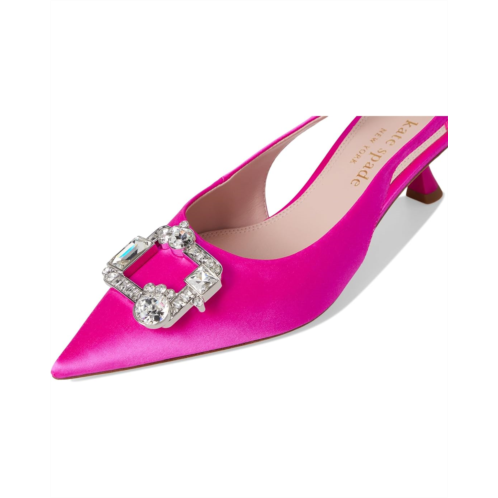 Kate Spade New York Renata Sling Heels earn perfect scores in the style category with their timeless pointed toe balanced by the hourglass kitten heel and the sparkling gemstone-embellished squared buckle on the vamp. The shoes are lightweight and made durable with the leather upper, lining, and insole.