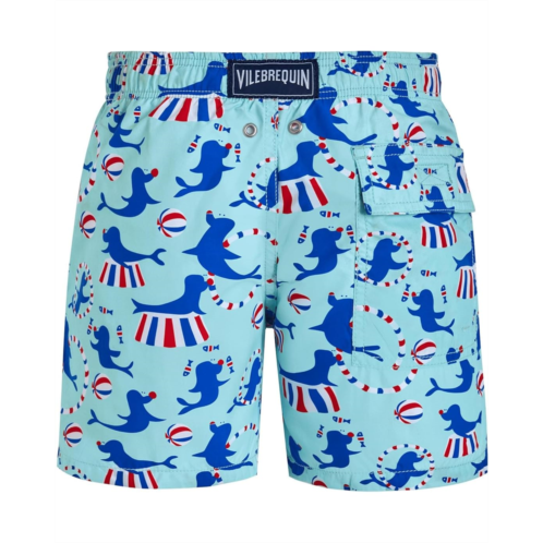 - Stylish and comfy, the Vilebrequin Kids Circus Jim trunks are a must-have for your little ones. The pull-on style trunks have an elastic waistband with a fixed bow, back eyelets, and a back pocket. The shorts have ultra-quick drying technology that makes them perfect swimwear apparel. They have dolphin-father's day circus print theme prints that elevate the overall look effortlessly.