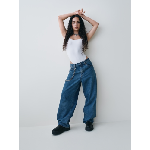 - Sits below the waist with a longer rise. Baggy through the hip & thigh. Loose, slightly tapered leg.