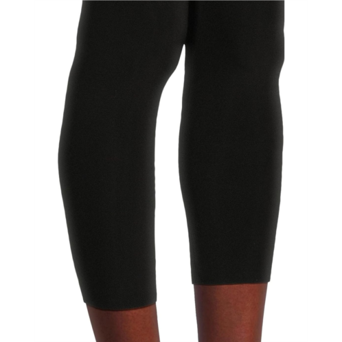 The Norma Kamali Cropped Leggings Without Waistband offer a sleek and streamlined silhouette with their slim fit and high waist design, while the absence of a waistband adds a modern twist. They are designed with a high-rise waist with an elastic at the waist for stretch. Perfect for both active pursuits and casual wear, the cropped length of these pull-on leggings provides versatility for any occasion.