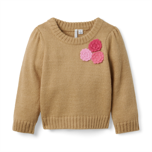 - A bouquet of floral applique details add a special touch to this soft sweater. We love the puff sleeves and ribbed details too.