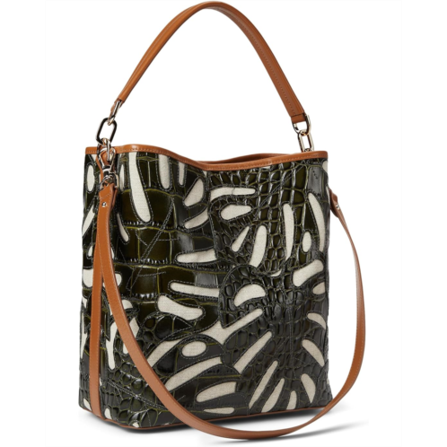 - The Brahmin Celina Shoulder Bag is a trendy new twist on a bucket bag. It features a detachable shoulder strap and a rolled top handle. The spacious interior has added functionality with a jewelry pocket and key clip for keeping your most precious items secure. The center-zip divider pocket, interior zip pocket, single kangaroo pocket, and pen pocket offer extra storage. The leather construction with stylish new hardware on the sides gives this added freshness with ease. Plus, the allover printed design elevates the style and bottom feet ensure it remains stable as you keep it down.